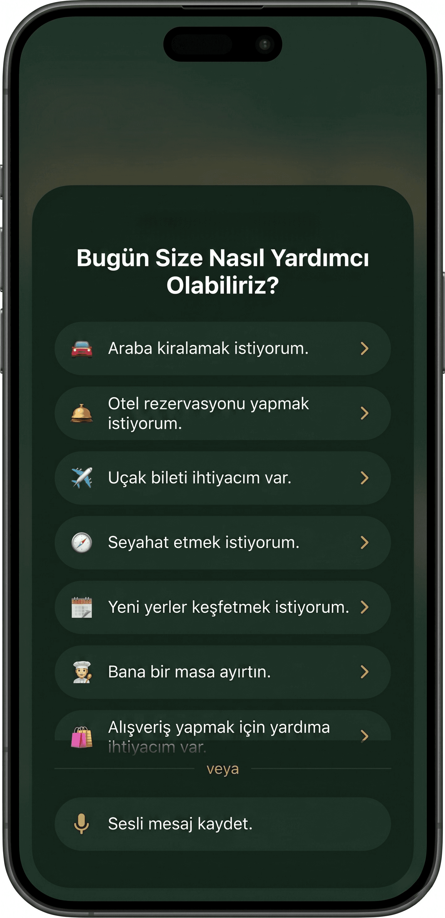 İster seyahat planlıyor, ister seçkin restoran rezervasyonları yapıyor ya da özel etkinliklere erişmek istiyor olun; concierge hizmetimiz size anında kişisel destek sunar.